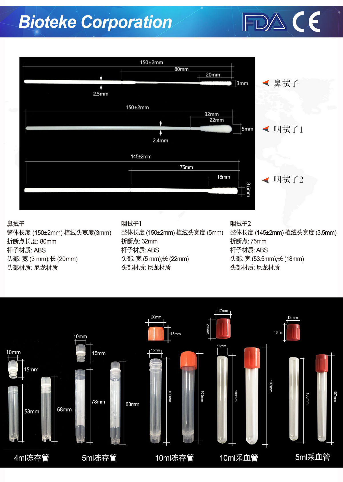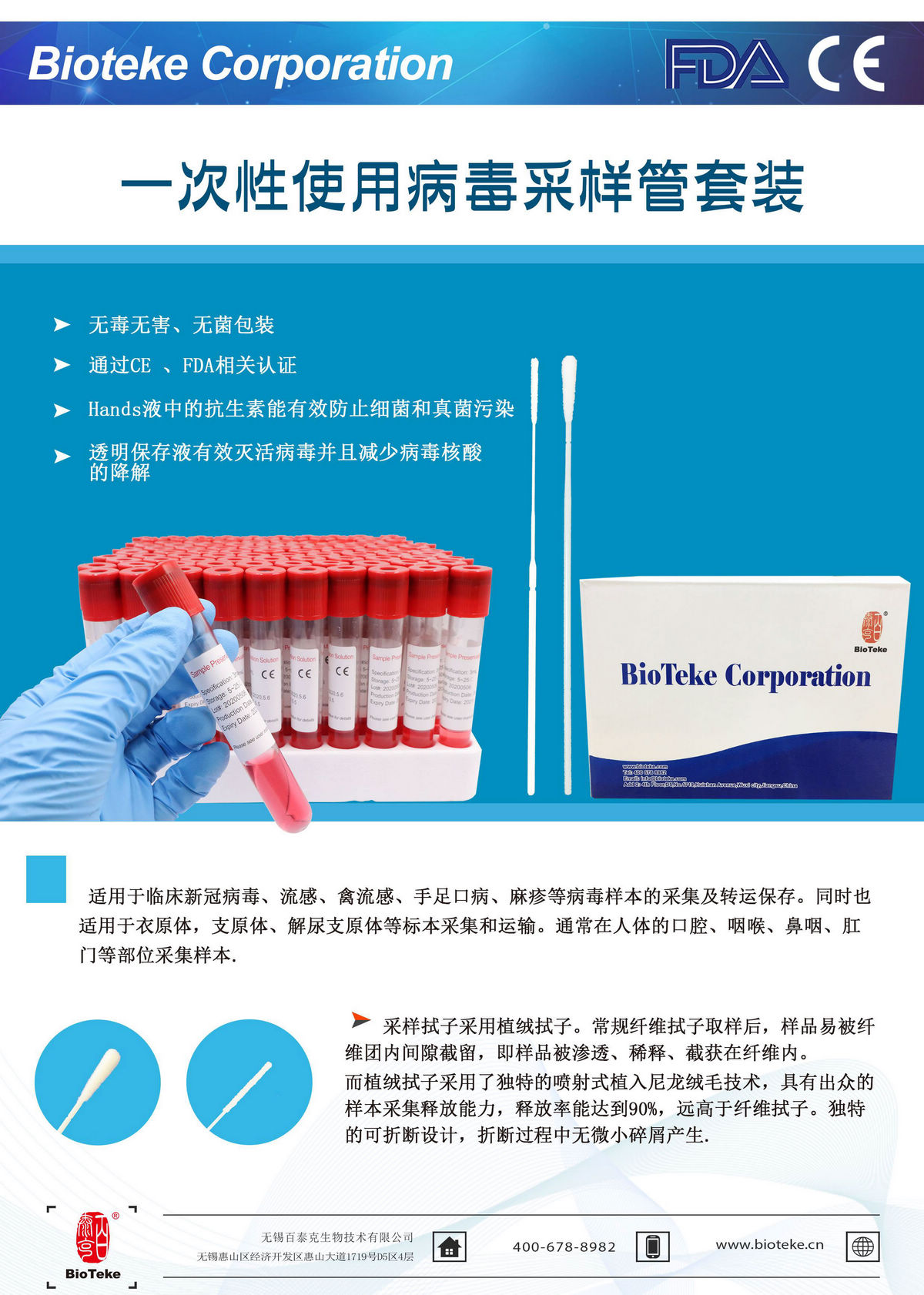• 一次性使用病毒采樣管